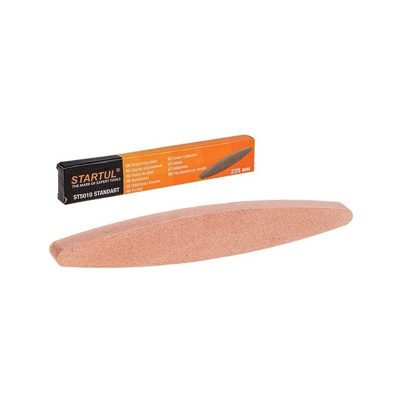The STARTUL Standart abrasive sharpening stone (ST5010) in a boat (concave) shape is designed for sharpening and honing the cutting edges of knives, chisels, and other tools. Its dual-sided, waterproof design with FEPA 180 grit makes it a versatile and practical solution for workshop and kitchen maintenance.