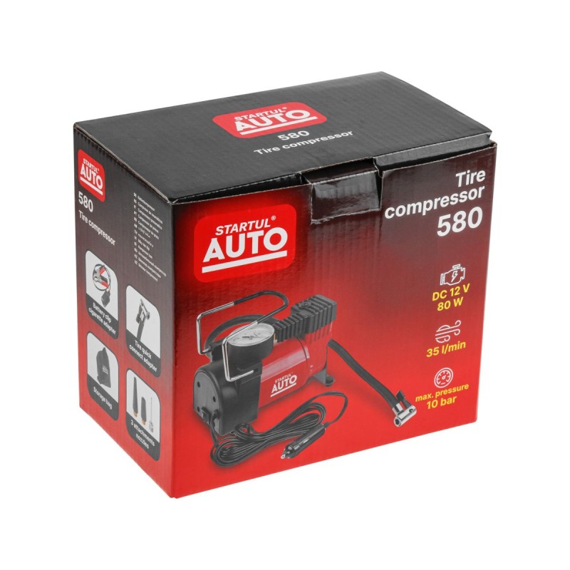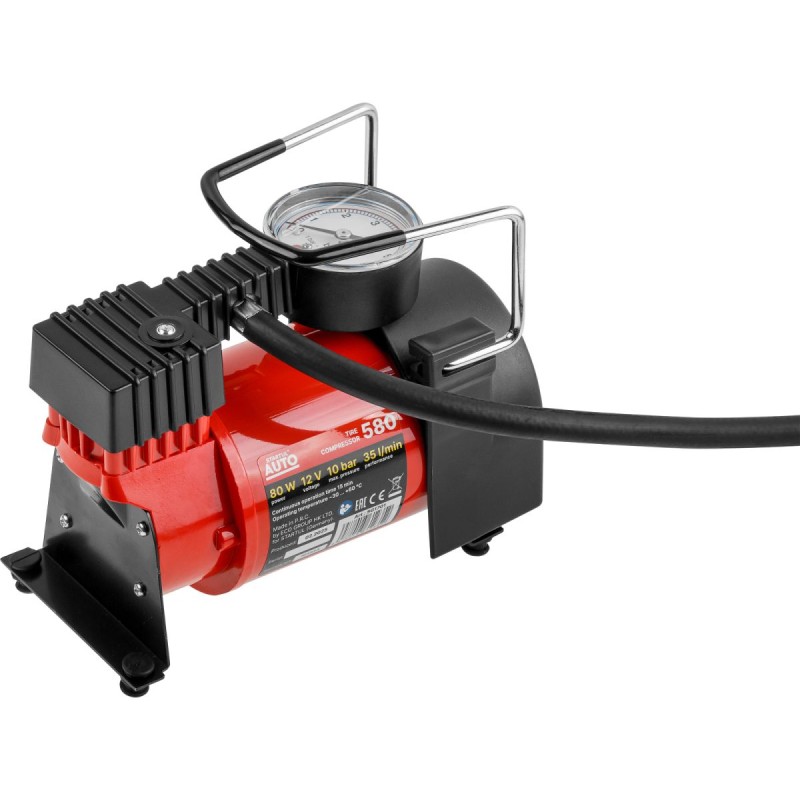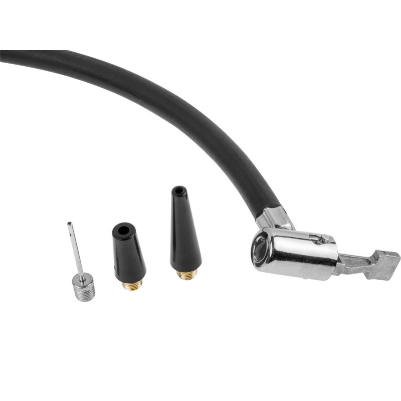 The set includes a convenient storage and carrying bag, as well as three nozzles for inflating balls, mattresses, etc.