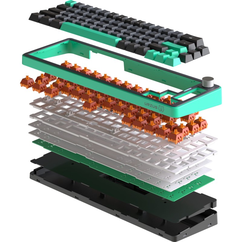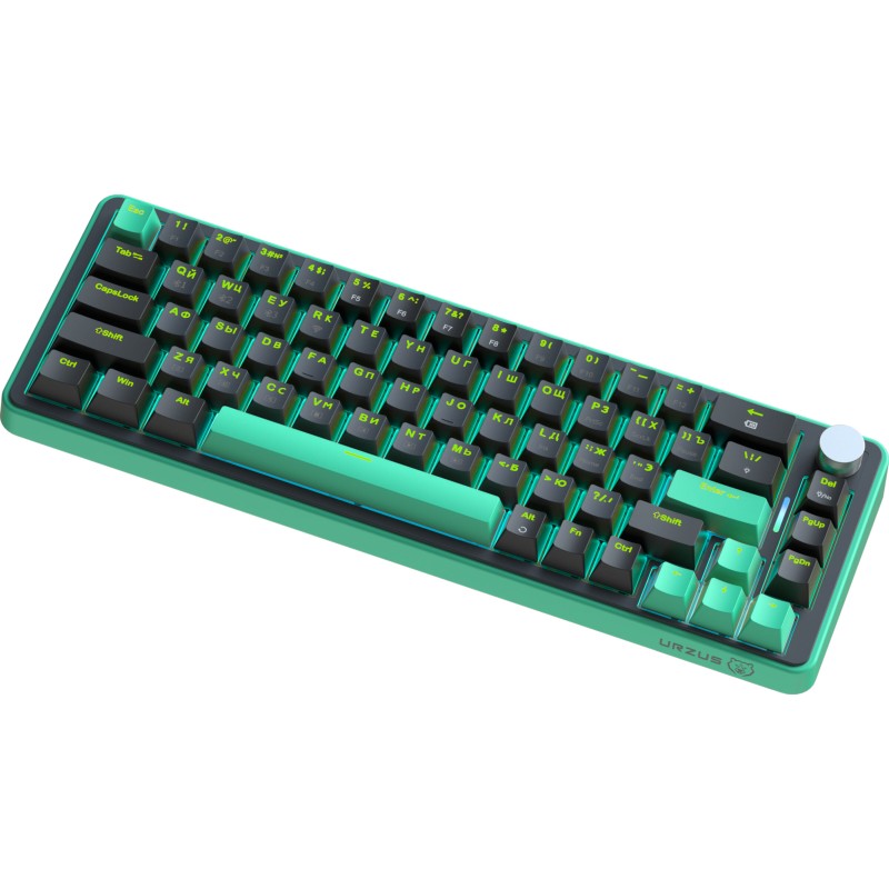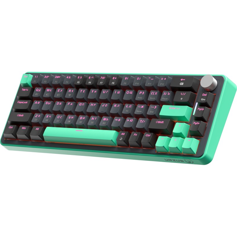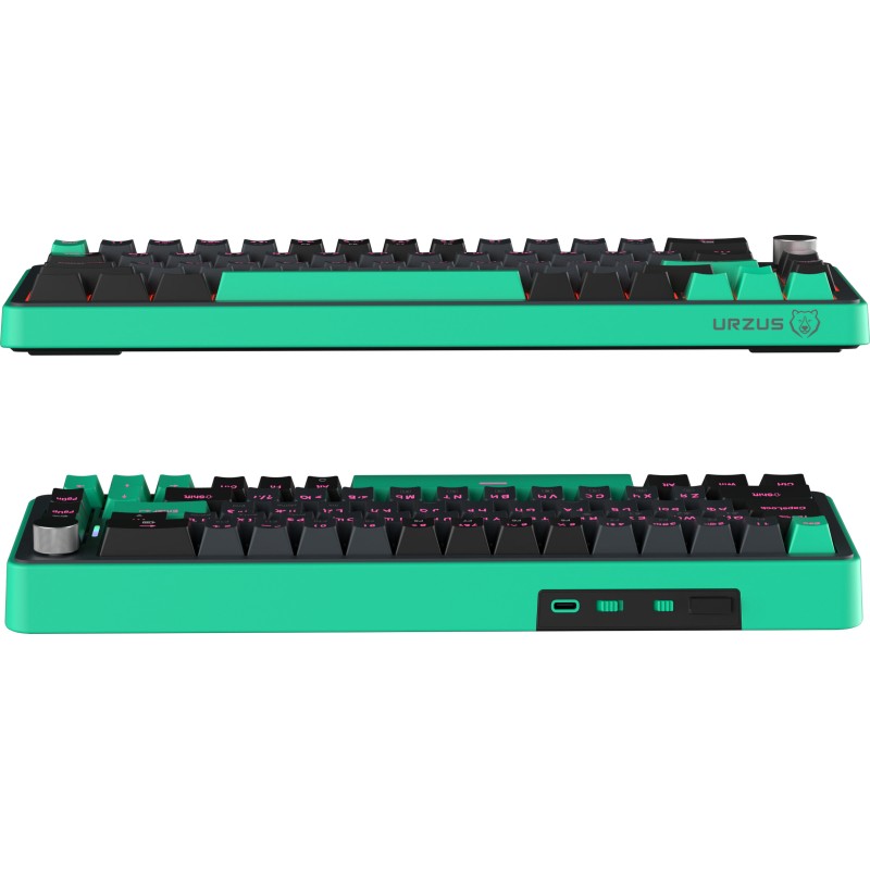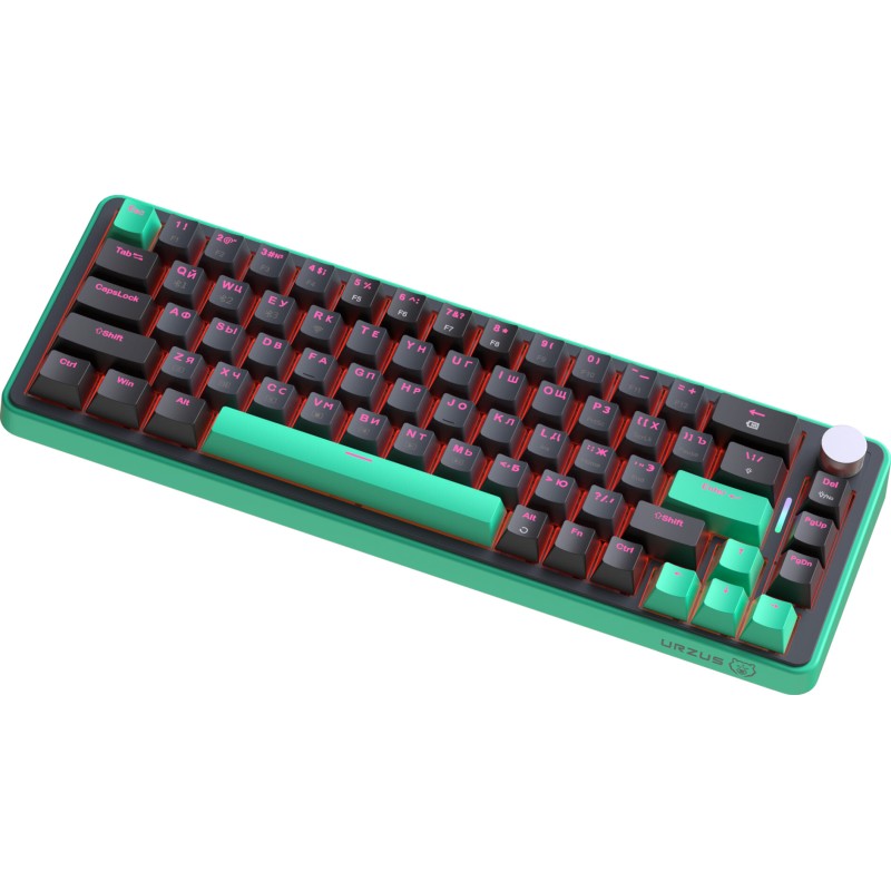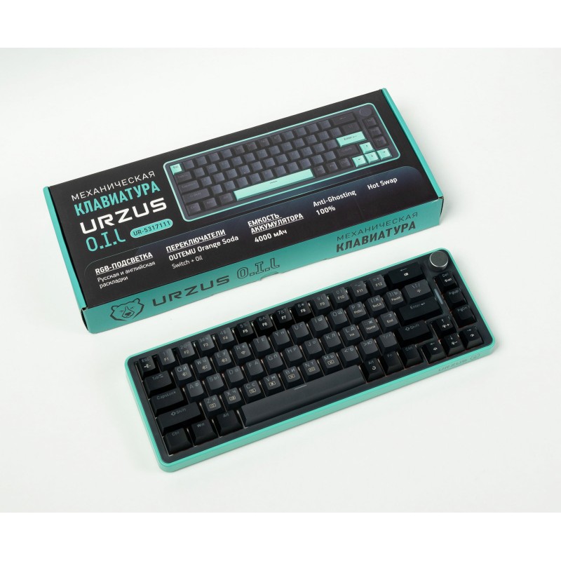 The URZUS O.I.L is a premium 65% wireless mechanical gaming keyboard offering ultimate flexibility. Enjoy tri-mode connectivity (2.4GHz RF, Bluetooth, USB-C wired) and a satisfying tactile typing experience with its unique pre-lubricated OUTEMU Orange Soda switches. Featuring hot-swappable sockets, a volume roller, vibrant RGB, and a massive 4000mAh battery, it's built for performance, customization, and cord-free convenience.