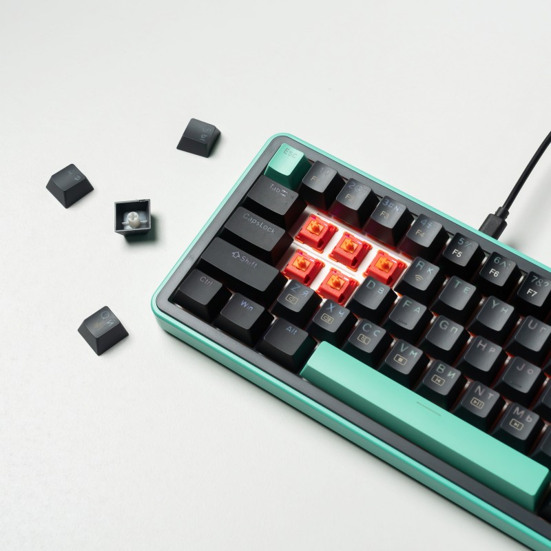 Compact 65% Layout with Dedicated Keys: Retains arrow keys and navigation cluster for functionality while maintaining a compact footprint.
