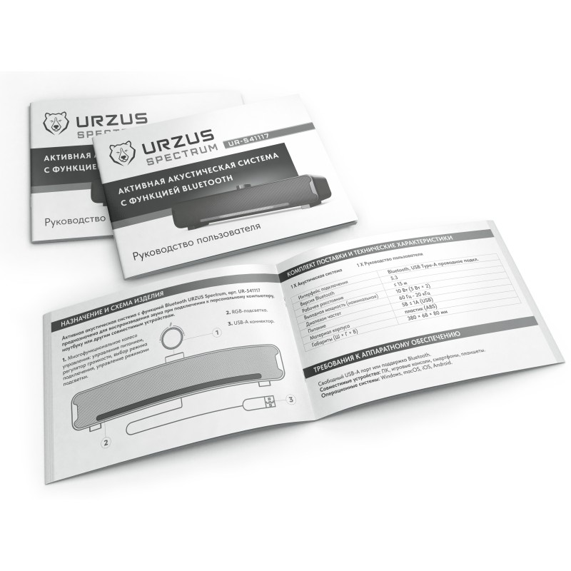 The URZUS Spectrum Speaker System is a compact speaker designed for connection to a computer and other multimedia devices. It delivers clear and balanced sound, suitable for listening to music, watching movies, and gaming. The device features a sleek design that will easily fit into any interior. Reliable construction and simple controls make it convenient for everyday use. An excellent choice for those looking for an affordable and quality desktop audio solution.