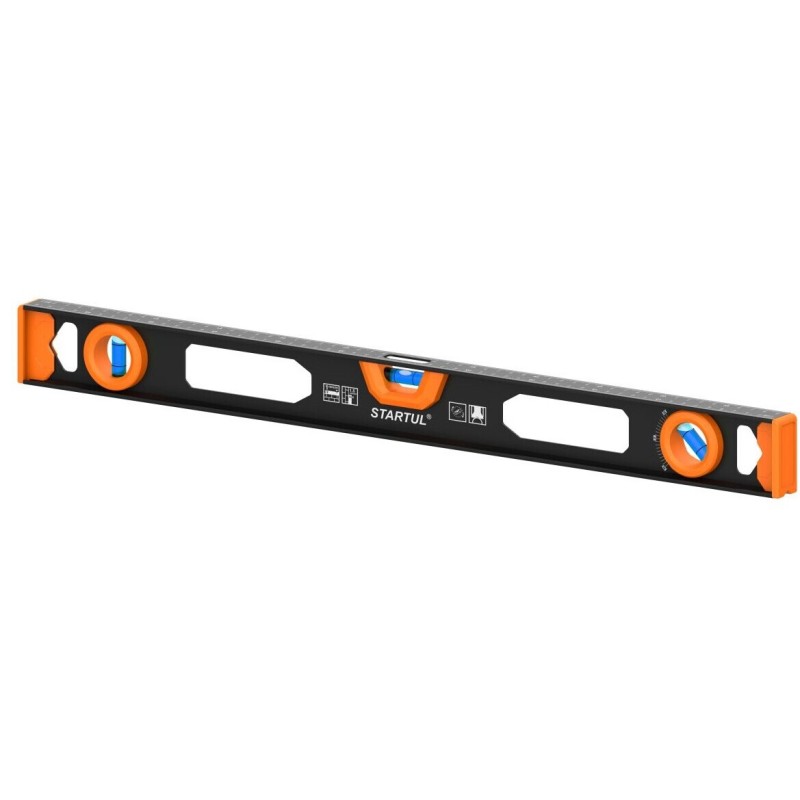 The STARTUL Master ST2540-100 box beam level is a practical and versatile tool for a variety of construction, carpentry, and installation tasks. Its 1000 mm length is ideal for doors, windows, and medium-sized surfaces. The inclusion of a rotating angle vial alongside standard horizontal and vertical vials provides added functionality for setting and checking slopes, making it a more capable tool than basic models.