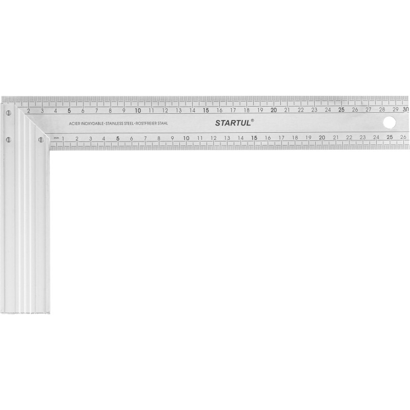 The STARTUL Profi ST3525-030 try square offers the premium hybrid construction of the Profi line in a 300 mm size for larger-scale precision tasks. Combining a lightweight aluminum handle with a rigid, thin stainless steel blade, this tool delivers exceptional accuracy and durability for fine woodworking, cabinetry, and critical mechanical layout where a longer reference edge is required.