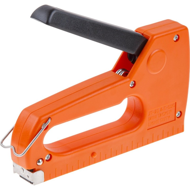 The STARTUL Standart staple gun is a lightweight and affordable tool perfect for light-duty fastening tasks. Its plastic body houses a reliable spring mechanism, making it suitable for attaching fabric, insulation, or cables to wood and drywall using standard 53-type staples.