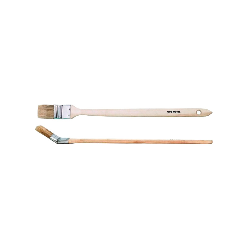 The STARTUL Standart 63 mm radiator brush is a large-capacity tool designed for tackling extensive painting jobs in hard-to-reach areas such as behind large radiators, between tight gaps, and along baseboards. Its wide, natural wool bristles ensure efficient coverage and a smooth finish, making it ideal for use with all types of coatings, particularly oil-based paints, varnishes, and enamels.